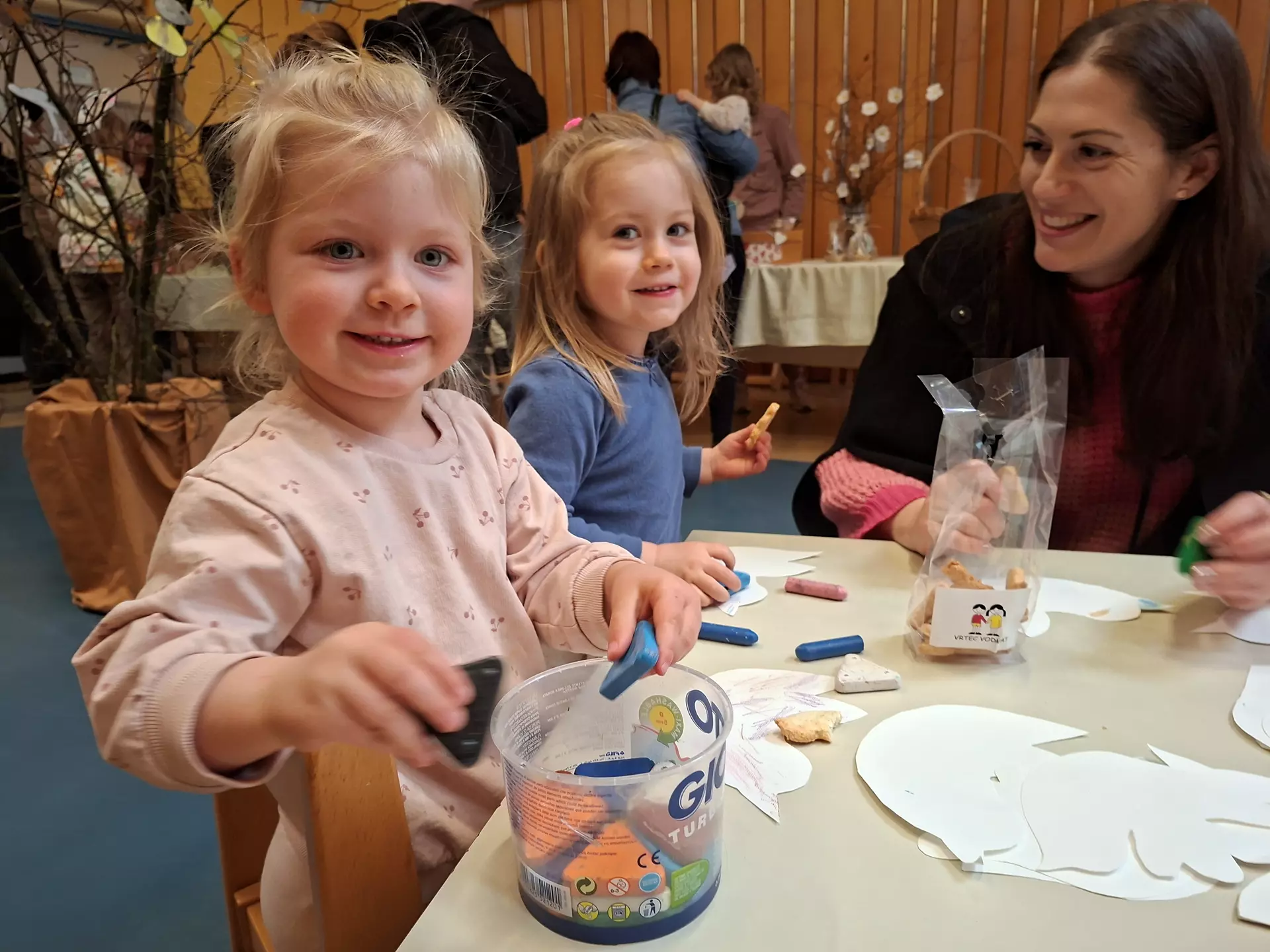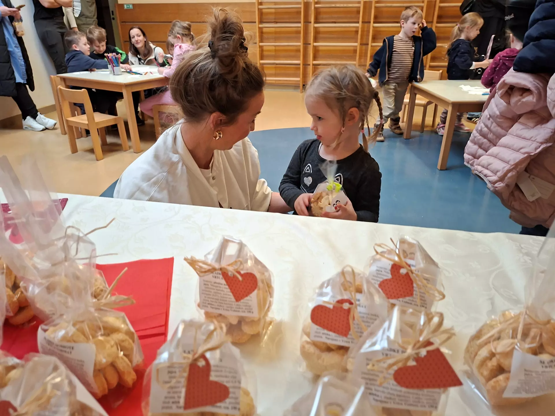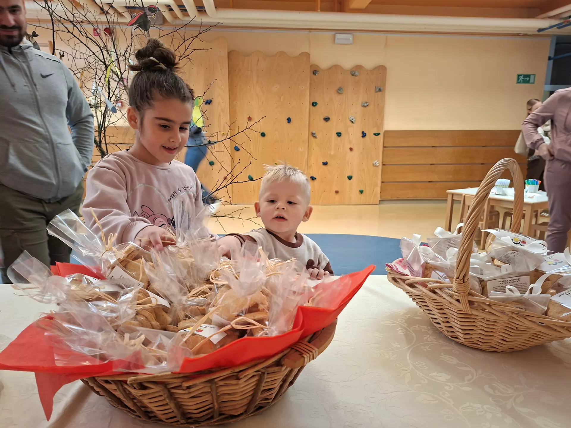 Otroci so skupaj z odraslimi že cel teden pred praznikom pekli piškote, ki so jih skrbno spakirali za tržnico sladkih dobrot. Ponudili smo jih strašem pa tudi drugim obiskovalcem našega vrtca. Prijetno je bilo na našem sladkem bazarju, potekala je prodaja piškotov za dobrodelni sklad vrtca, otroci in straši so skupaj ustvarjali, prijetna srečanja in drobni klepeti so napolni prostor, ki so ga krasili ptički otrok.