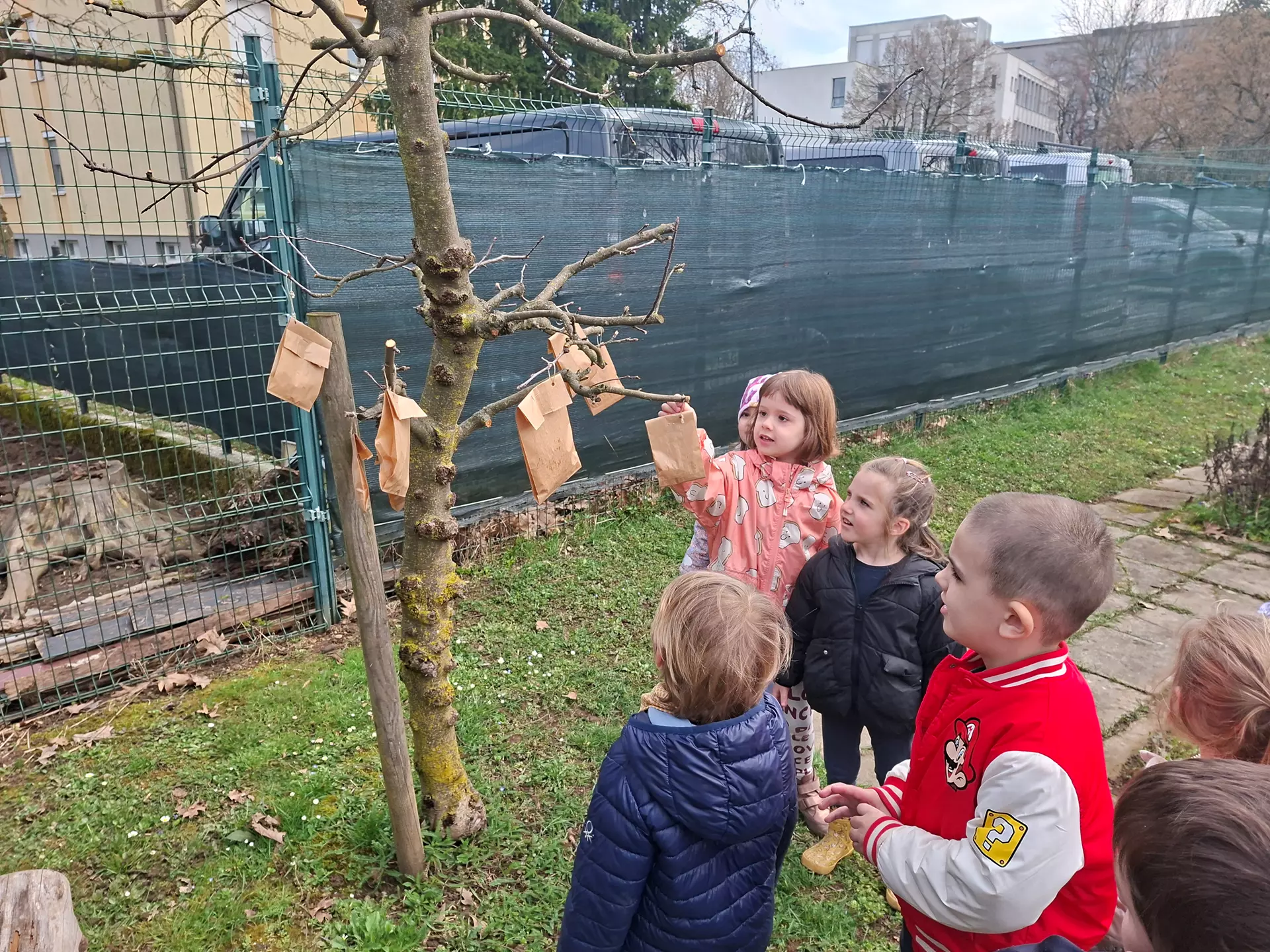Otroke je ta dan na igrišču, med drevesi pričakalo presenečnje sladkih dobrot, ki so jih zanje pustili ptički po svatbeni gostiji.