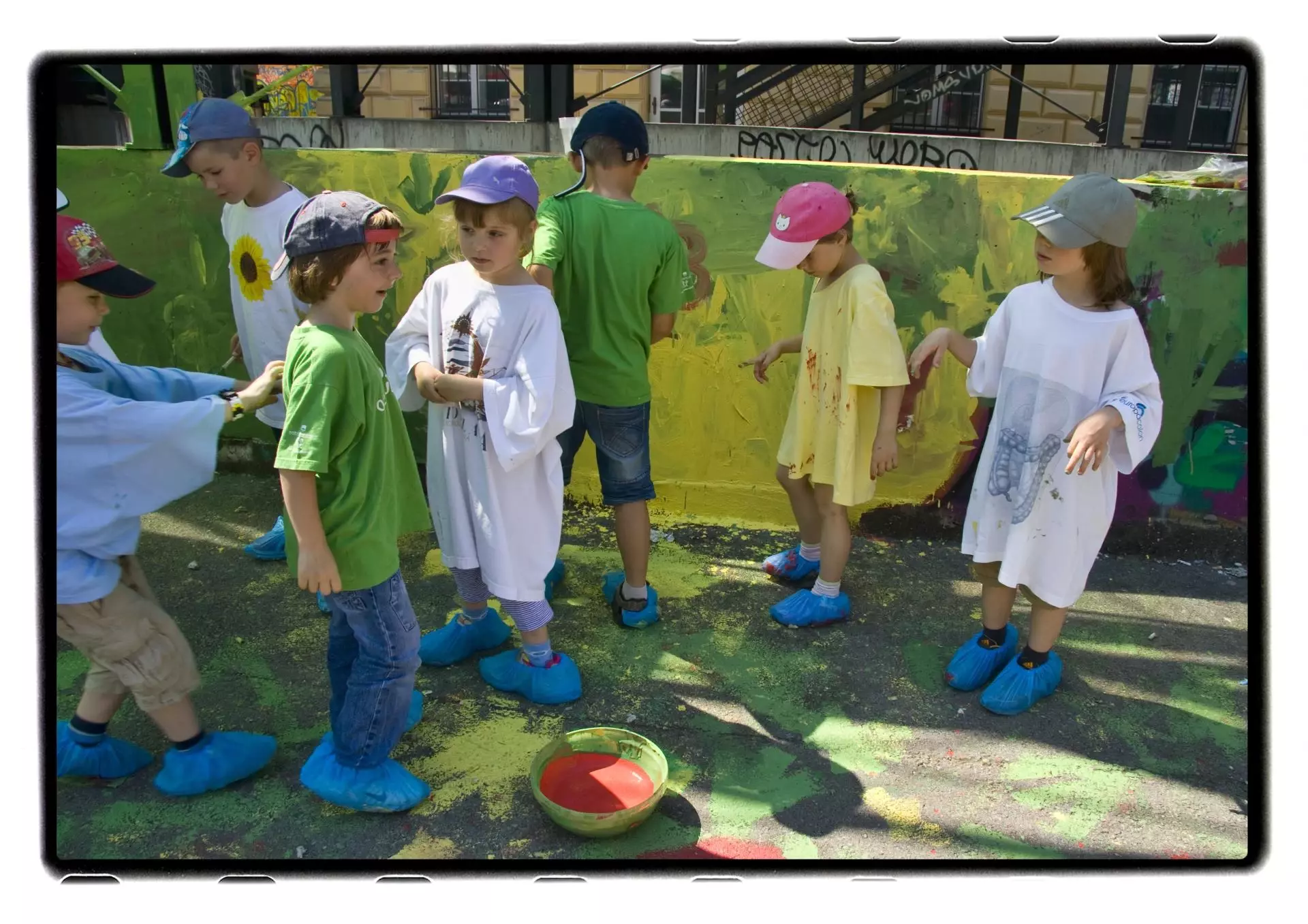Otroci so sami izbirali tematiko upodobitev. Znani slovenski grafitar Miha Artnak in akademski kipar Jure Markota sta jih seznanila z različnimi tehnikami urbane umetnosti. Grafite so otroci skupaj z umetnikoma ustvarili na vrtčevskem igrišču.