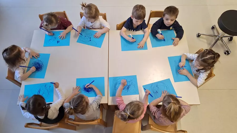 5. Na moder list papirja smo z modrim flomastrom risali svoja doživetja.