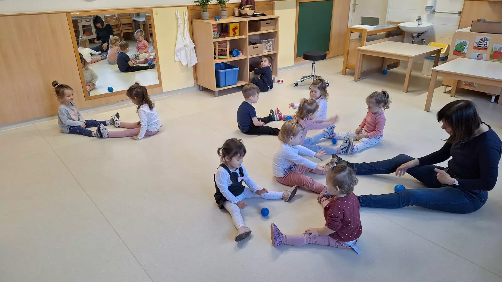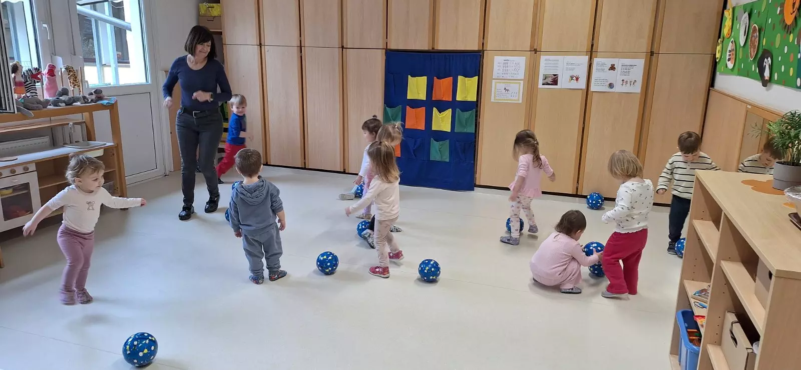 1. Razgibavali smo se z modrimi baloni, potem pa še z modrimi igračami in predmeti v igralnici.