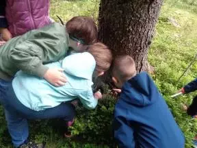 Vsi vrtčevski otroci, stari od 5 do 6 let, so imeli to priložnost, da so se z avtobusom odpeljali za pet dni na Pokljuko, kjer domujejo pokljuški škrati. Iskali smo jih, iskali, a zaman. Vedno so se nam spretno skrili. Verjetno tudi zato, ker ne marajo hrupnega okolja, nas je bilo pa skoraj 50. Ampak kljub temu da nas je bilo veliko, smo lomastili po njihovem gozdu tako, da nismo škodovali rastlinam in živalem. Zato so nas pa verjetno celo dvakrat nagradili. Enkrat so nam v gozdu skrili zaklad, katerega smo iskali s pomočjo zemljevida in napisanih napotkov, drugič pa so nam nagrado pustili v eni izmed sob svojega domovanja - v biatlonskem tunelu.