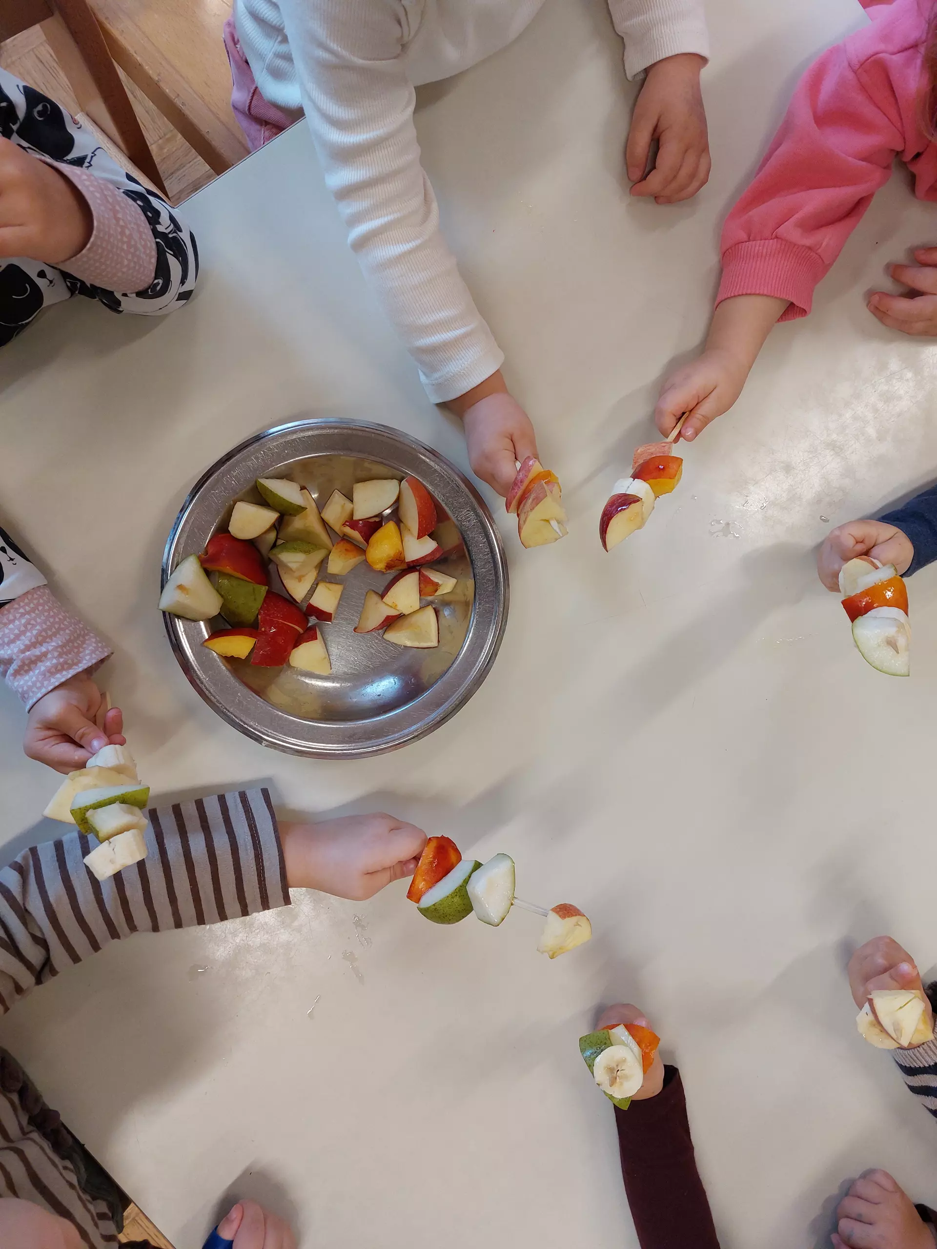 Z najmlajšimi otroki smo iz jabolk pripravili zdravo in okusno sadno malico.